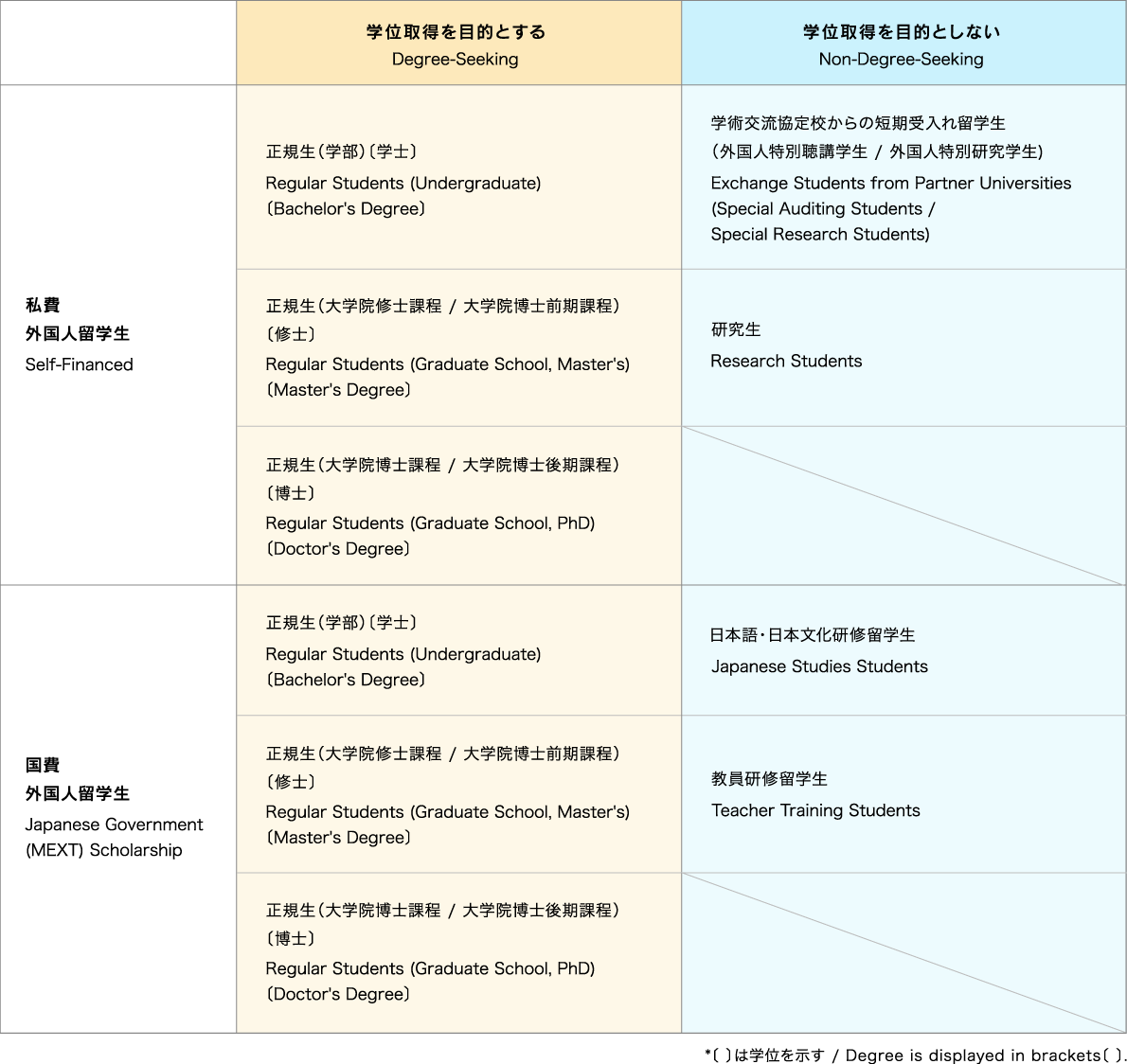 日本政府(文部科学省)からの奨学金を受給して日本に留学する者。詳しくは下記をご参照ください。