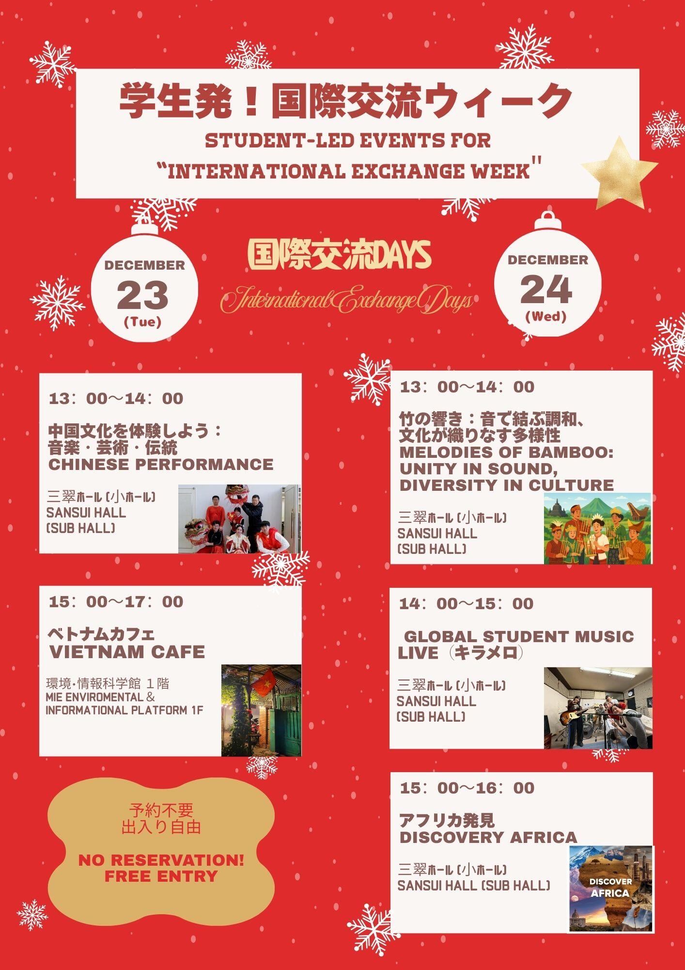 【国際交流DAYS】の一環として、学生による自主企画イベント 「学生発!国際交流ウィーク」 が開催されます。