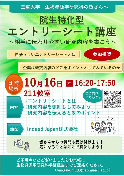 [生物資源研究科]院生特化型エントリーシート講座