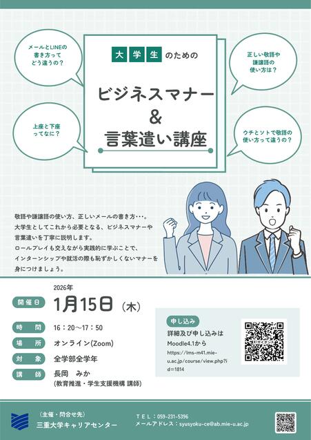 インターンシップやアルバイト、就活前に知っておきたい敬語やメールの書き方、席次などを90分で学べるオンライン講座!