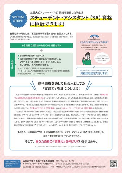 「三重大ピアサポート(PS)資格」だけではなく、ぜひ「スチューデント・アシスタント(SA)資格」も目指してください!