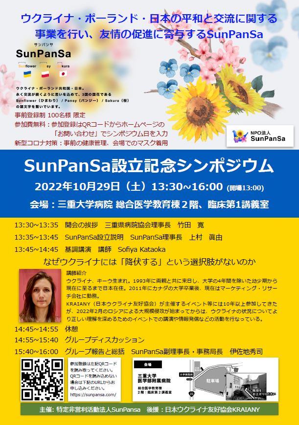 SunPanSaとは、ウクライナ・ポーランド共和国・日本のそれぞれ3か国の国花の頭文字を繋げたもので、永く交流が続くようにという思いが込められています。