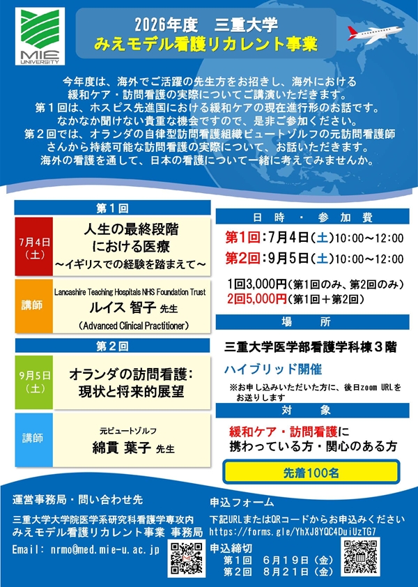 「2026年度 三重大学 みえモデル看護リカレント事業」開催のお知らせ
