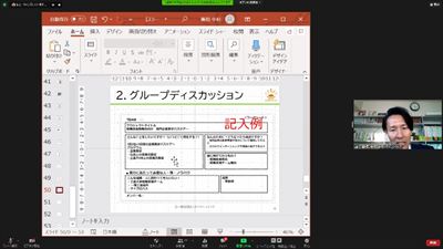 次に振り返りとして、各企業様が企業研究会開催前に課題や目標を入力したワークシートを見ながら、行動した結果を記入しました。その後グループに分かれて共有の時間があり、オンラインの経験値不足だったことやオンライン上の説明会においても様々な工夫や、チャット機能なども上手に活用できれば双方向のやりとりができるのではないかという意見等を交わしました。また、一般社団法人わくわくスイッチ白木氏より、最初に行われた1分間プレゼンテーションの重要さを教えていただきました。