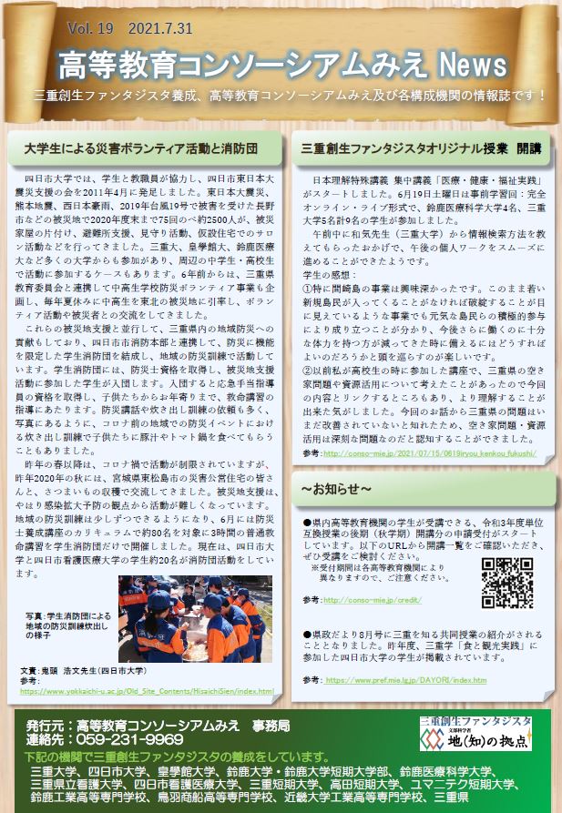 高等教育コンソーシアムみえ News Vol.19を発行しました