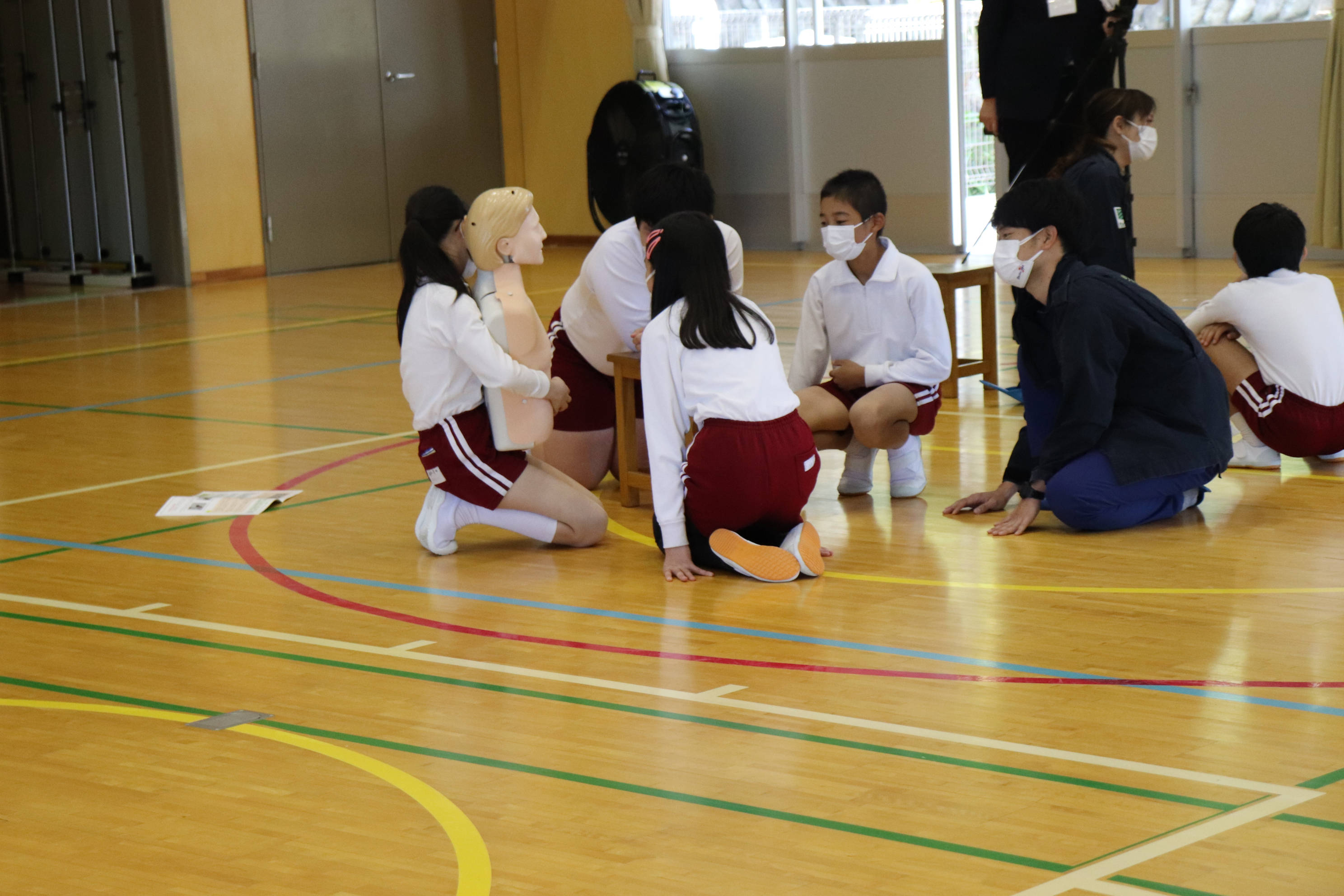 救命の連鎖は、「心停止の予防」「早期認識と通報」「一次救命処置」「二次救命処置と心拍再開後の集中治療」とされています。小学校の通常授業では「早期認識と通報」「一次救命処置」を取り扱い、「心停止の予防」は他の単元で扱われています。しかし、「二次救命処置と心拍再開後の集中治療」については扱われていません。今回の授業では、医学部附属病院救命救急センターと連携することで、普段学ぶことが難しい「二次救命処置と心拍再開後の集中治療」も含め、救命の連鎖を一連の流れで学習することができ、児童と教職員の学びを深めることができました。