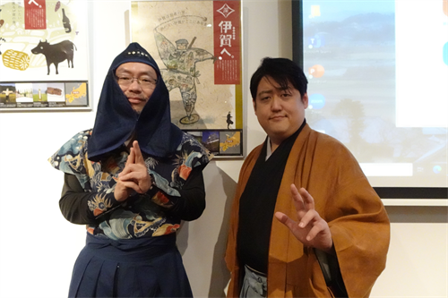 第1部の山田雄司・人文学部教授は、「史実と創作」と題して、「どうする家康」に登場する忍者の活躍は、史料には実際どのように記されているのか解説し、ドラマのメイキングの裏話なども披露しました。第2部のミスター武士道・ 戦国武将大好きYouTuberは、「大河ドラマで描かれた"伊賀越え"の変遷」と題して、これまでの大河ドラマでどのように伊賀越えが描かれているのか解説されました。