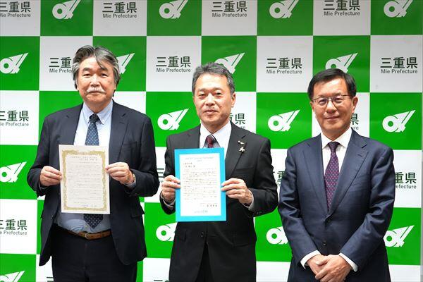 10月31日(木)、三重県ユニセフ協会会長職の一環で、公益財団法人日本ユニセフ協会の遠藤剛事務局長と共に伊藤正明学長が三重エフエム放送でラジオ収録、三重県庁で一見勝之三重県知事とのメッセージ交換を行いました。