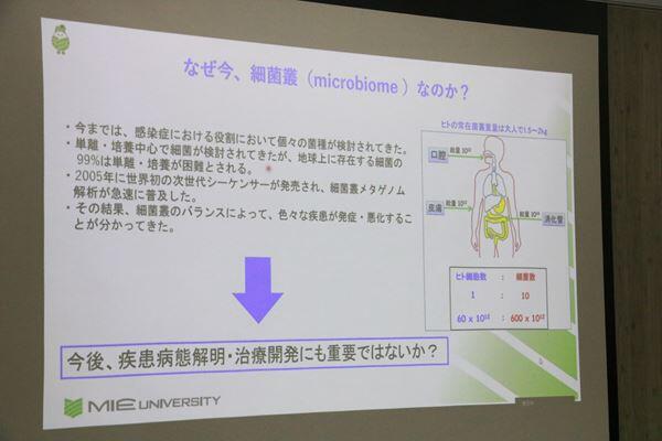 セミナーでは大きく2つのトピックスにわけて説明がありました。はじめに,「なぜ今、細菌叢なのか?」と題し、腸内細菌の多様性とその重要性について次世代シークエンサーによる解析の進展も含めて説明され、次に、糞便移植による治療法について具体例を挙げて紹介されました。