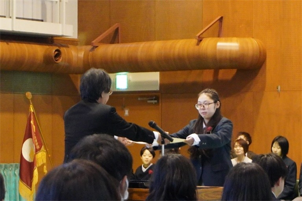 卒業生代表答辞:山口校長先生、青木蓮美さん