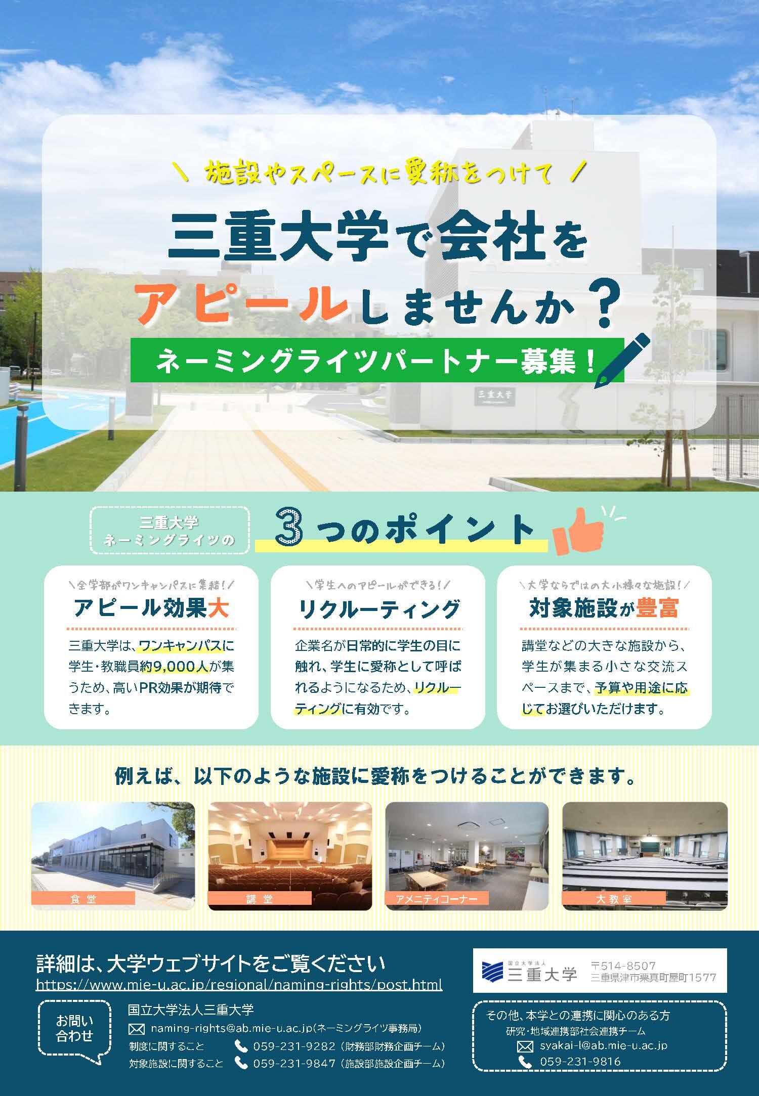 naming-rights@ab.mie-u.ac.jp(ネーミングライツ事業事務局)