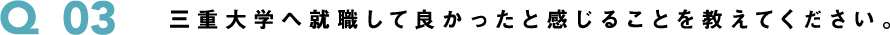三重大学へ就職して良かったと感じることを教えてください。 三重大学へ就職して良かったと感じることを教えてください。