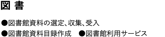 図書 ●図書館資料の選定、収集、受入 ●図書館資料目録作成 ●図書館利用サービス 図書 ●図書館資料の選定、収集、受入 ●図書館資料目録作成 ●図書館利用サービス