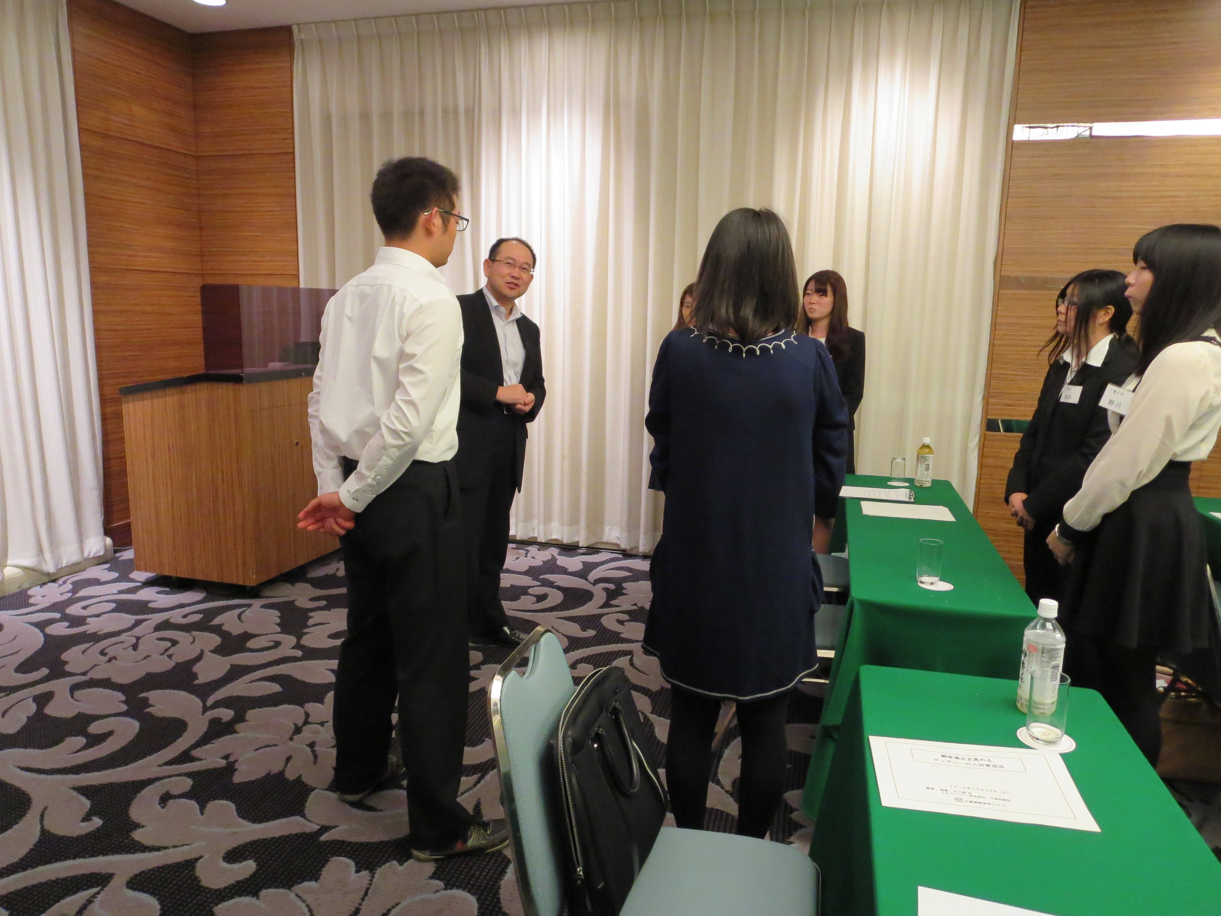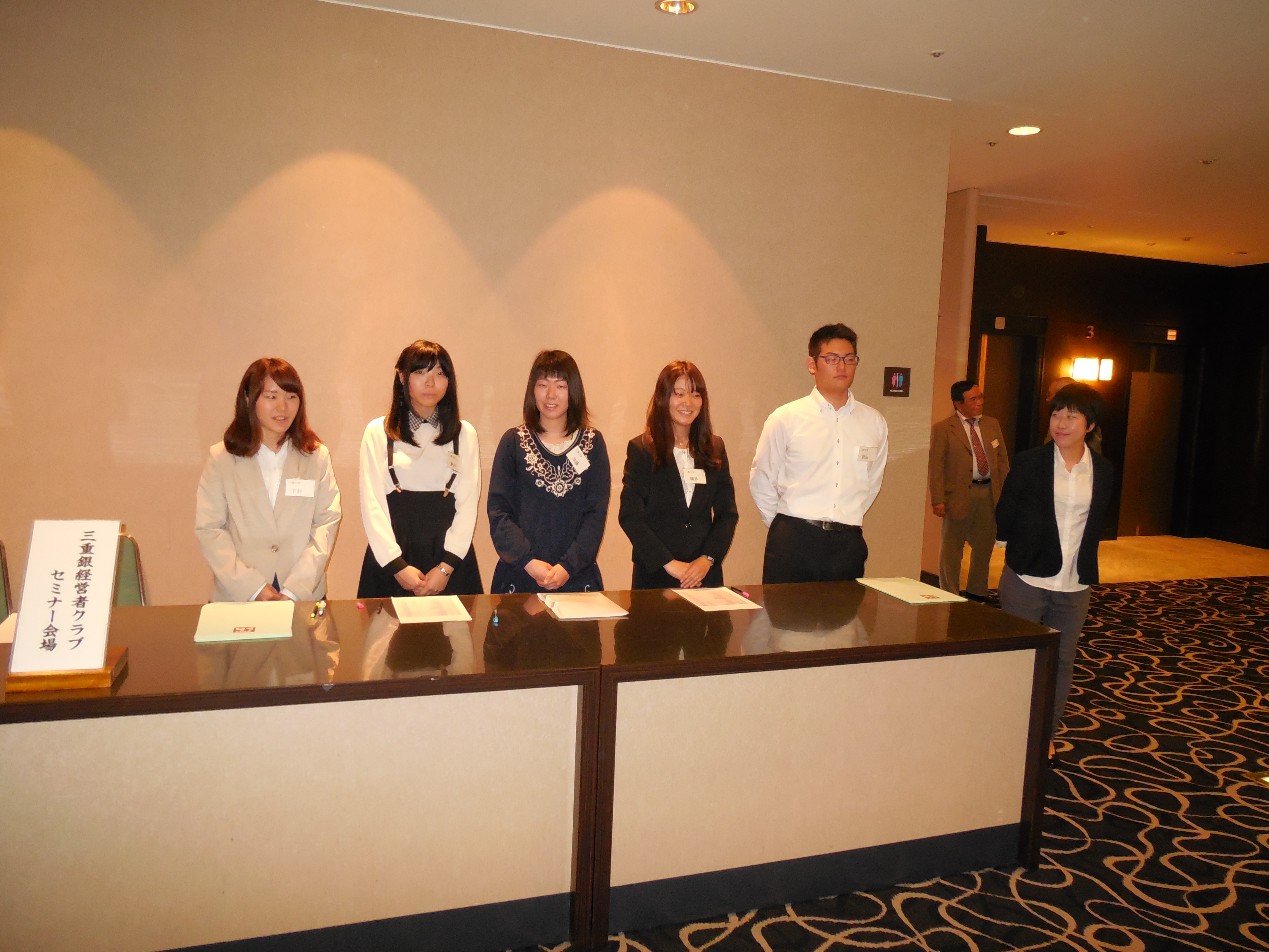 10月22日(火)、株式会社三重銀総研が主催する「三重銀経営者クラブ」セミナーに学生8名が運営スタッフとして参加しました。授業目的の一つである、グループで企業セミナーカリキュラムを作成するという目的のために、まず実際に企業セミナーとはどういうものかを体験しました。