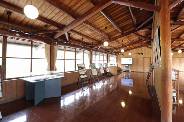 その後,平成25年度には,耐震性の向上及び活用を目的とする保存修理工事が行われ,同時にレーモンドホールの文化財的な価値を維持し,高めることにも努め,移築の際に変更されていた正面入口周りや内部隔壁(部分)は,この工事によって復原されました。